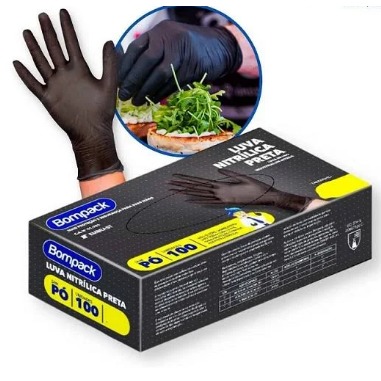 LUVA NITRILICA BOMPACK PRETA P C / 100