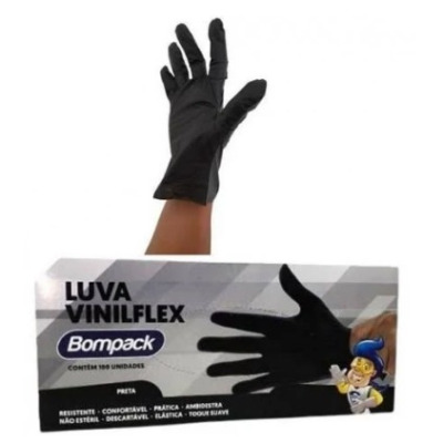 LUVA VINILFLEX BOMPACK S / PO PRETA G C / 100